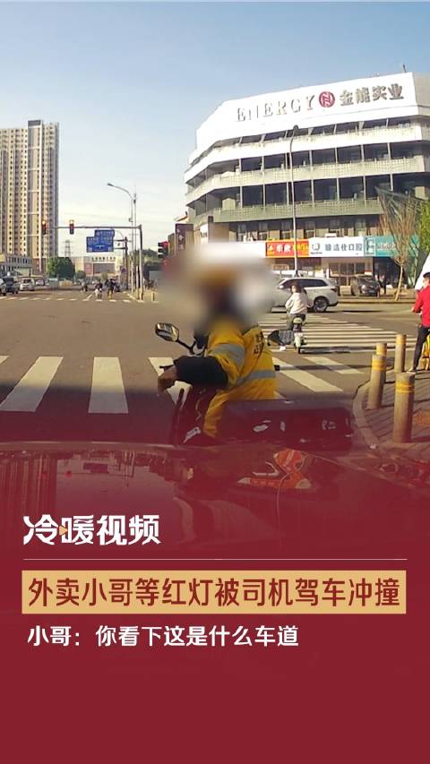 外卖小哥等红灯被司机驾车冲撞 小哥:你看下这是什么车道