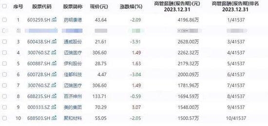 随着A股2023年年报披露完毕,上市公司高管薪酬也一一亮相。