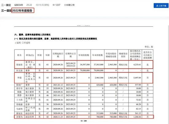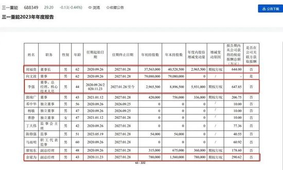 如三一重能总经理李强2022年的收入达到5497.89万元,董事长周福贵的收入也达到4235.61万元。到2023年度,李强的年薪降至647.85万元,降幅达到88.22%;周福贵的年薪为644万元,降幅84.8%。