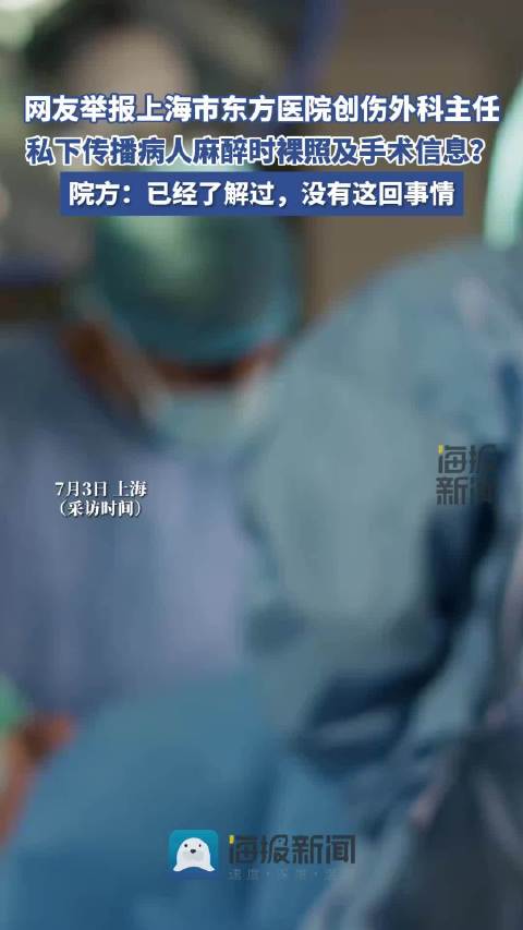 7月3日上午,海报新闻记者联系到上海市东方医院,相关工作人员称已接到实名举报,医院方介入调查,经了解,属私人恩怨,相关工作人员称没有这回事情,暂不清楚医院对此事的处理结果。