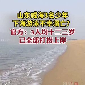 9月1日,一网友在社交平台发布消息称,8月29日,山东五名初中生相约去游泳,下水后被暗流拖走三个,跑上岸两个。9月1日上午,纵览新闻记者从事发海域附近的山东省威海荣成市斥山街道办事处获悉,事发地点位于石岛湾休闲沙滩海域,共有3个孩子不幸溺亡,均为十二三岁的少年,至31日凌晨已全部打捞上岸。