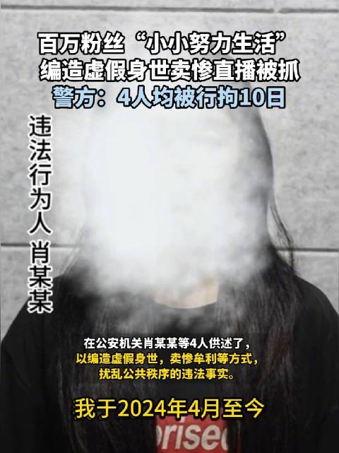 编造身世,卖惨牟利!百万粉丝网红小小努力生活被抓
