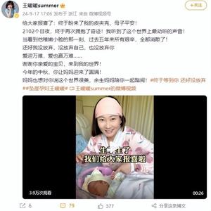 孕妇坠崖案当事人王暖暖怀孕三个月被丈夫推下悬崖,奇迹生还,曾被判定不孕不育。9月17日,她官宣生子:“谢谢你亲爱的宝贝,你让妈妈迎来了圆满!