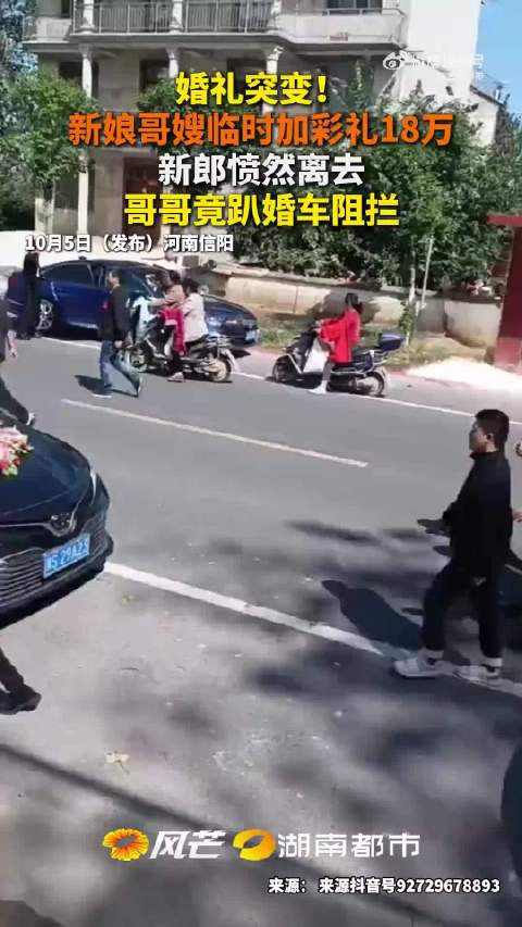 河南省信阳市淮滨县,婚礼当天,新娘哥嫂临时再加18万彩礼,新郎怒而转身就走,新娘哥哥竟趴在婚车上面阻拦。