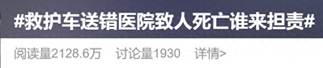10月23日,#救护车送错医院致人死亡谁来担责#这一话题冲上微博热搜。