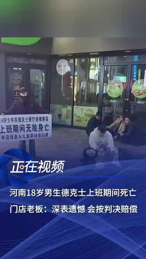 网传河南郑州一18岁男生在德克士连续熬夜身亡,其家属在门店口举牌,声称要“讨回公道”。