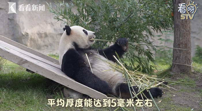 上海野生动物园动物保育员孙文晓介绍,大熊猫的皮毛由针毛和绒毛组成,其毛发的内层髓质较厚,具有很好的保温作用,而大熊猫本身皮肤也较厚,平均厚度能达到5毫米左右,这样“毛皮大衣”的保暖功能就得到了保障,而毛发的外层富含油脂又让“毛皮大衣”增添了防潮功能。