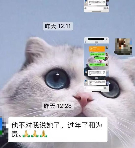 根据刘女士提供的其与民政局工作人员的聊天记录显示,她将和陈某某的聊天记录提供后,对方表示,“她不对,我说她了。过年了和为贵。别生气,她说给您道歉。”