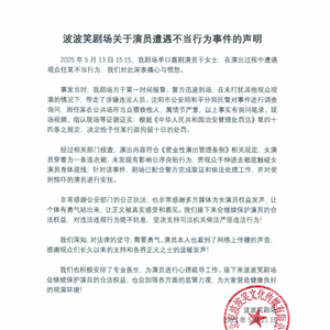 央视网消息:据@波波笑剧场 官微消息,5月21日,波波笑剧场发布关于演员遭遇不当行为事件的声明。内容如下: