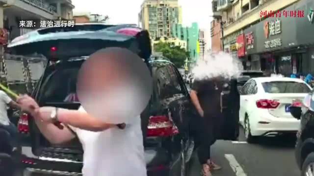 东莞一奔驰车司机别停前车后用高尔夫球杆狂砸挡风玻璃