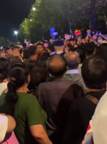 近日,山东滨州一地城管执法时与商户产生矛盾,造成过路群众围观。
