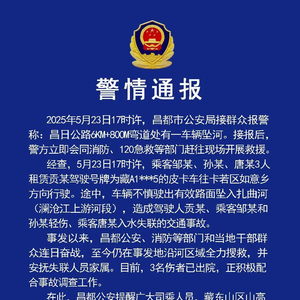 央视网消息:据昌都交警官微消息,昌都市公安局交通管理支队5月29日通报,5月23日17时许,昌都市公安局接群众报警称:昌日公路6KM+800M弯道处有一车辆坠河。接报后,警方立即会同消防、120急救等部门赶往现场开展救援。