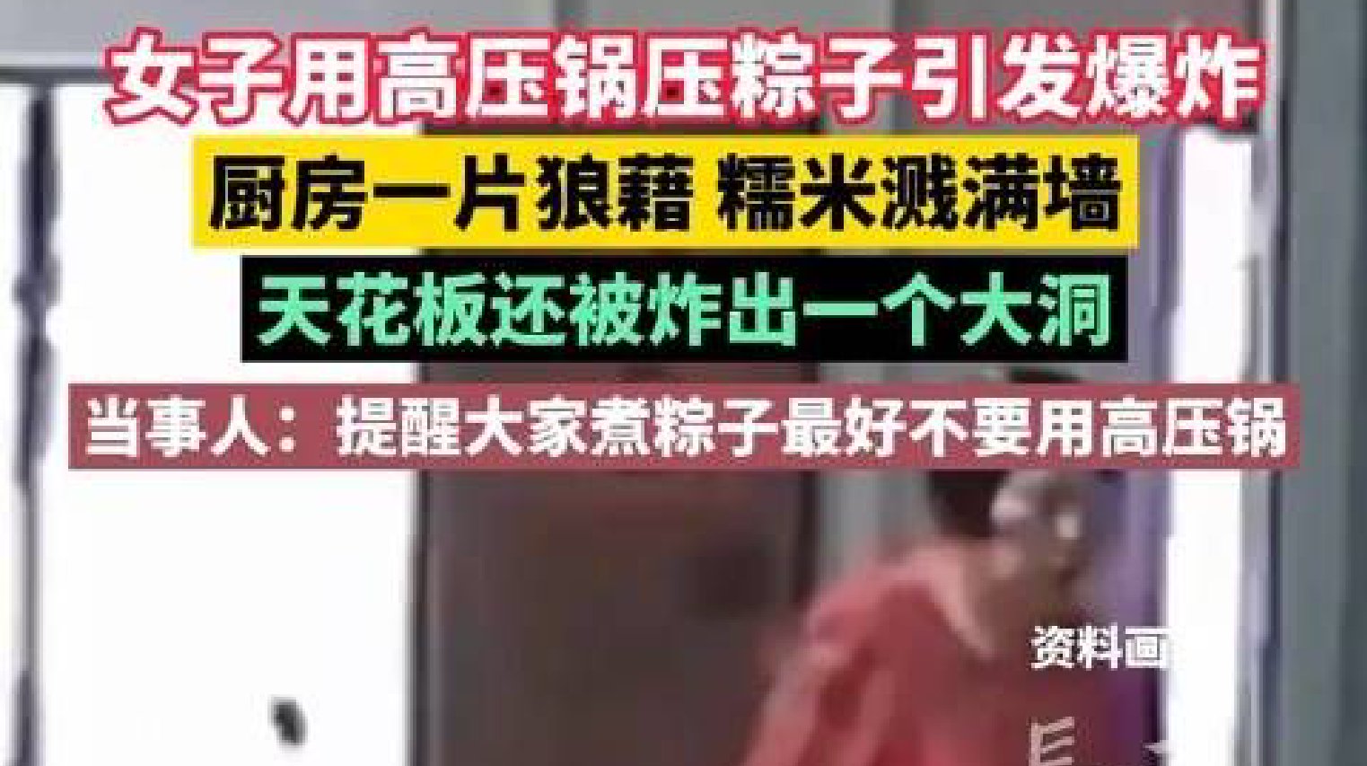 女子用高压锅煮粽子不慎炸穿天花板 当事人提醒:煮粽子别用高压锅