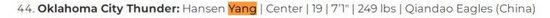 首次上榜!美媒SBC更新模拟选秀:杨瀚森第44顺位被雷霆选中
