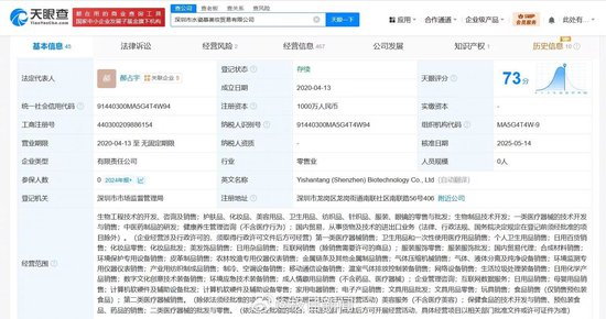 值得注意的是,5月14日,黄杨钿甜父亲杨伟卸任深圳市水瓷慕美妆贸易有限公司(曾用名:益善堂(深圳)生物科技有限公司)法定代表人、执行董事、总经理并退出股东行列,同时司玲霞卸任监事。近日,该公司因通过登记的住所或者经营场所无法联系,被深圳市市场监督管理局龙岗监管局列入经营异常名录。