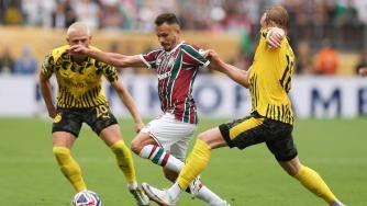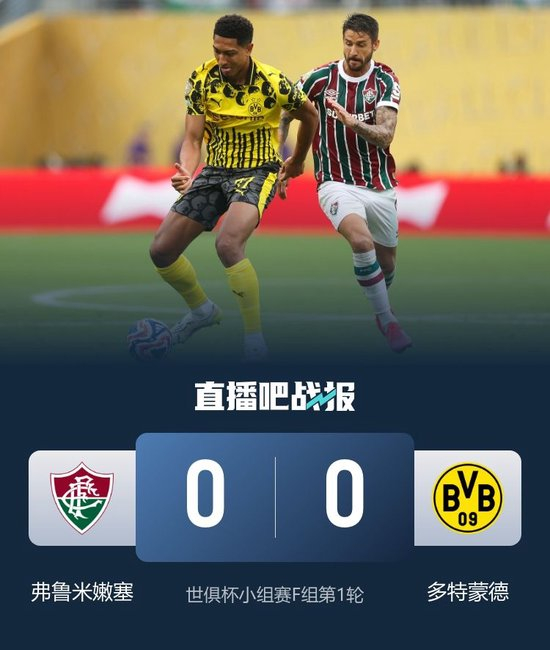 直播吧6月18日讯 北京时间6月18日凌晨0时,世俱杯小组赛F组第1轮,弗鲁米嫩塞在大都会人寿体育场对阵多特。上半场双方均无建树。弗鲁米嫩塞半场0-0战平多特。下半场,小贝林厄姆替补登场上演他在多特的首秀,科贝尔接连关键扑救力保城门不失。最终弗鲁米嫩塞0-0战平多特。