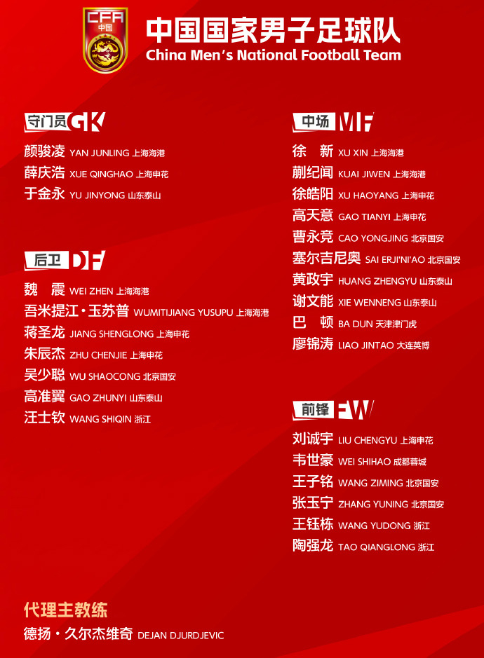 ·中国足协30日公布征战东亚杯的国足26人正式名单,平均年龄25.4岁。