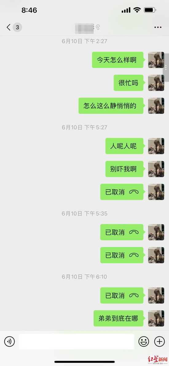 衷女士称,6月8日,弟弟从广州白云机场飞抵泰国廊曼机场,随后失联。“弟弟报平安之前的最后一通电话,就给妈妈打了,他很着急地说,妈妈帮我充100块钱话费,说他那里没有信号,没有网络,就把电话给挂了。”