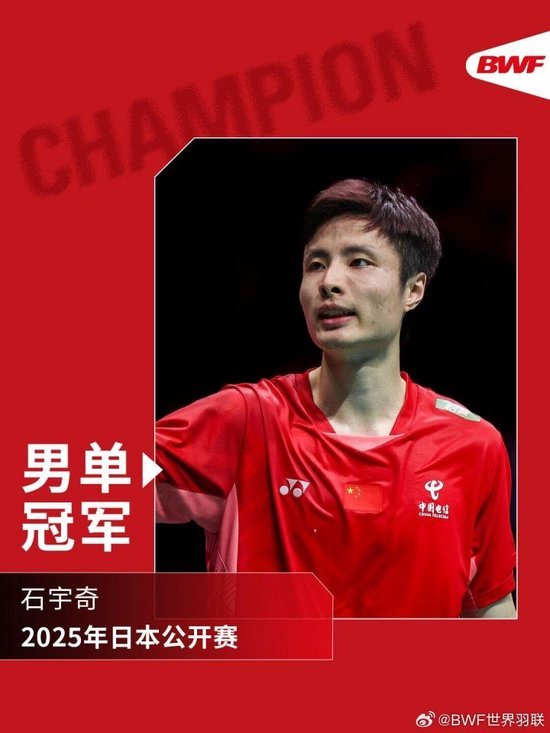 直播吧07月20日讯 2025年日本羽毛球公开赛男单决赛,中国选手石宇奇2-0击败法国选手拉尼尔,首夺日本羽毛球公开赛男单冠军。
