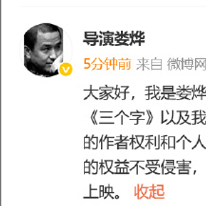 7月24日,#曝娄烨涉嫌职务侵占上千万# 登上热搜。@导演娄烨 发文:“视频内容纯属捏造,是对我个人的诬陷。面对长久以来针对《三个字》以及我个人的造谣,诽谤,作为一个电影导演,我将以法律方式维护我的作者权利和个人权利,保护影片以及所有参与《三个字》影片的演员和工作人员的权益不受侵害,并将追究那些想抢夺影片的人及公司的法律责任,直到影片最终上映。”