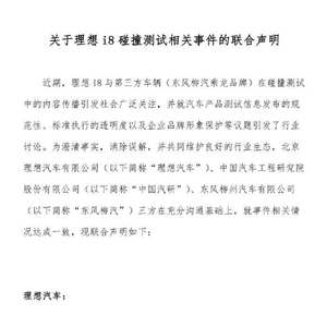 理想汽车、中国汽研、东风柳汽就i8对撞测试事件发布联合声明 界面新闻 界面新闻官方账号 2025.08.0619:35 关注 8月6日,理想汽车官博发布关于理想i8碰撞测试相关事件的联合声明。具体如下:
