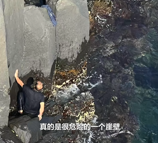 王女士表示,救人大哥是越过围栏,顺着岩石一点点爬下去的,崖壁很滑,根本就没有落脚的地方。
