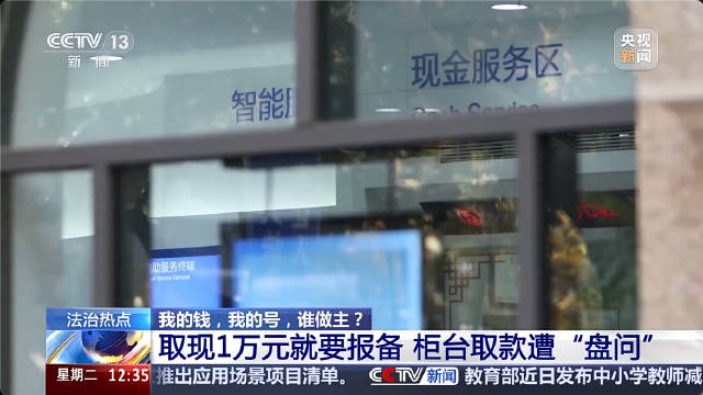 当事人 周筱赟:我的一位朋友要结婚,因为我的建行卡在ATM机上取现的限额是5000,我就到银行的柜台去取现,柜员问我取现的用途。我感到非常奇怪,因为据我所知,央行管理办法规定是取现5万元以上需要报备。我告诉柜员我只取4万现金,这时候柜员的领导告诉我,他们这里规定取现1万元以上就要报备。