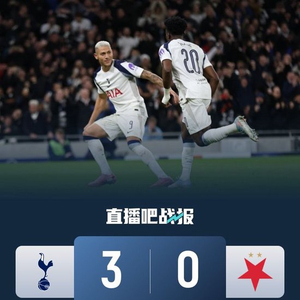 直播吧12月10日讯 北京时间12月10日凌晨4时整,2025-26赛季欧冠联赛阶段第6轮在新托特纳姆热刺球场展开角逐,热刺主场迎战布拉格斯拉维亚。上半场罗梅罗造乌龙,下半场库杜斯点射扩大比分,西蒙斯造点+主罚命中。最终热刺主场3-0完胜布拉格斯拉维亚,热刺欧冠6轮仅1负,布拉格斯拉维亚欧冠仍未尝胜绩。