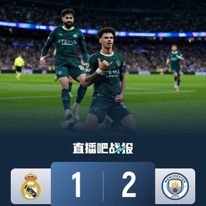 直播吧12月11日讯 北京时间12月11日凌晨4时整,2025-26赛季欧冠联赛阶段第6轮在伯纳乌球场展开角逐,皇家马德里主场迎战曼城。上半场罗德里戈打破32场球荒,库尔图瓦脱手送礼,奥赖利扳平比分,吕迪格抱摔送黄点套餐,哈兰德点射反超,下半场库尔图瓦和多纳鲁马均救险。最终曼城客场2-1逆转皇马,曼城取得各赛事4连胜,皇马遭遇两连败。欧冠积分榜方面,曼城积13分升至第4,皇马积12分位居第7。