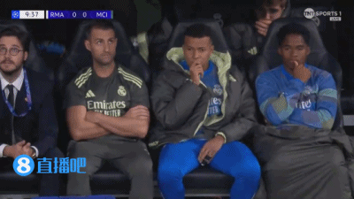镜头给到因伤坐在替补席的姆巴佩。↓