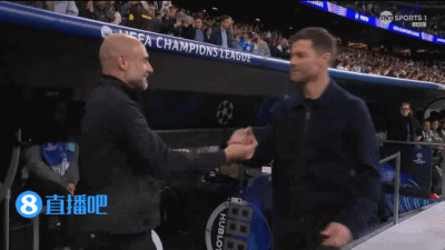 瓜迪奥拉和阿隆索拥抱致意。↓