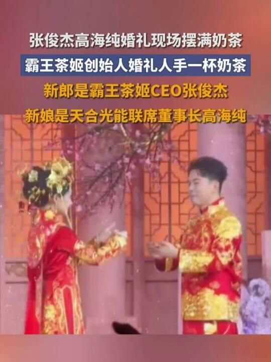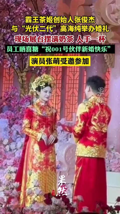 霸王茶姬创始人张俊杰与“光伏二代”高海纯举办婚礼,现场展台摆满奶茶,演员张萌受邀参加