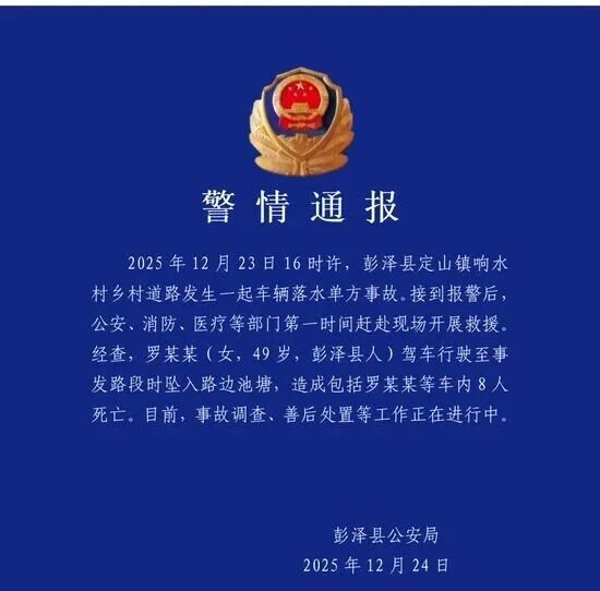 江西幼儿园8人坠塘,园长丈夫在配合警方调查中,坠塘车辆是私家车,园内有两辆19座校车