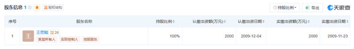 工商信息显示,普思投资成立于2009年12月,法定代表人为王思聪,注册资本2000万元人民币,经营范围包括项目投资、投资管理、投资咨询等,由王思聪全资持股。