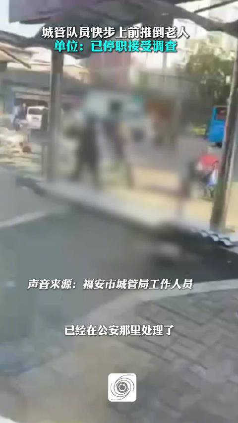 城管队员快步上前推倒老人,福建福安城管局:已停职,公安正侦办