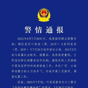 铅山县公安局通报,经查,2025年7月初,叶某斌曾多次与人提及“欲前往境外赚快钱”的想法。7月30日17时许,叶某斌与欧阳某某抵达云南普洱市,在试图非法出境时被边防检查人员依法拦截劝返。边防人员当场将该情况电话告知叶某斌母亲与欧阳某某父亲,但二人不听劝阻,仍执意于8月1日自行绕道至广西百色市,并于8月3日通过偷越国(边)境方式非法出境,后一直在柬埔寨电诈园区主动从事电信网络诈骗犯罪活动,期间二人可在电诈园区内自由活动,但不能随意进出园区。