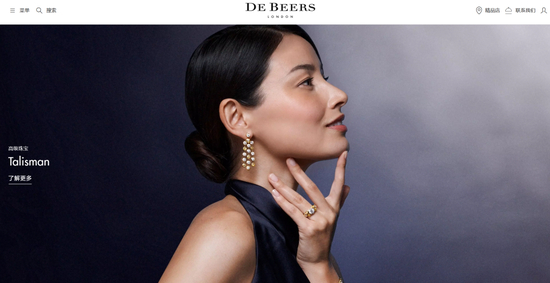 官网资料显示,戴比尔斯于1888年在伦敦创立,其广告语“钻石恒久远,一颗永留传”影响广泛。作为世界上最大的钻石生产和销售公司,戴尔比斯营业额一度占世界钻石供应市场90%的份额,目前仍控制着世界毛坯钻石贸易的60%。