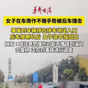 女子在车旁做不雅手势被后车撞击