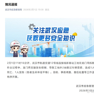 2月1日下午,记者从武汉市应急管理局了解到,此次事件有人伤亡,具体情况当地多部门还在处置中,稍后会有更准确的消息发布。