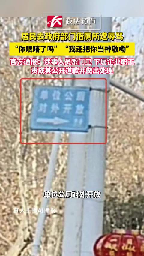 居民去政府部门借厕所遭辱骂:“你眼瞎了吗”“我还把你当神敬嘞” 官方通报:基本属实,责成其公开道歉并做出处理