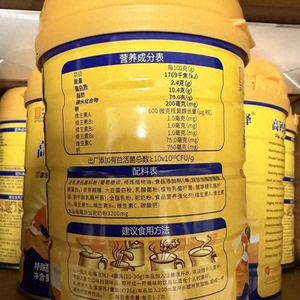 另一款“驼饮”牌高钙益生菌骆驼奶粉,同样存在多处信息异常。该产品包装正面印有“PICC中国人保8.460, -0.10, -1.17%)”标识及“益生菌+氨基酸+多种维生素”的宣传语,背面则印有“中国第一寿星132岁每天喝骆驼粉”等暗示长寿功效的表述,目标受众明确指向老年消费者。