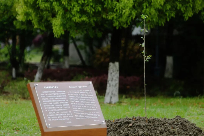 活动中,中国计量科学研究院捐赠了“牛顿苹果树”树苗。国家市场监督管理总局相关负责人介绍了“牛顿苹果树”的历史渊源及培育情况。据悉,艾萨克·牛顿(1643.1.4-1727.3.31)26岁成为英国剑桥大学著名的数学教授。他是一位英格兰物理学家、数学家、天文学家、自然科学家,同时是世界上著名的科学家之一。“牛顿苹果树”因与艾萨克·牛顿关于万有引力的科学发现相关而闻名,被视为科学探索精神的重要象征。此次落户吴兴的树苗,由英国国家物理研究院赠予、中国计量科学研究院培育后移植而来。该树的始祖乃是种植在英国林肯郡沃尔索普村牛顿母亲家花园中的正宗苹果树。