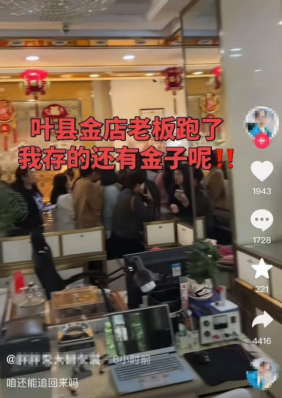 相关视频显示,一招牌名为“叶县金店”的店铺门口有多名群众,不少人在视频中说“叶县金店老板跑了”。