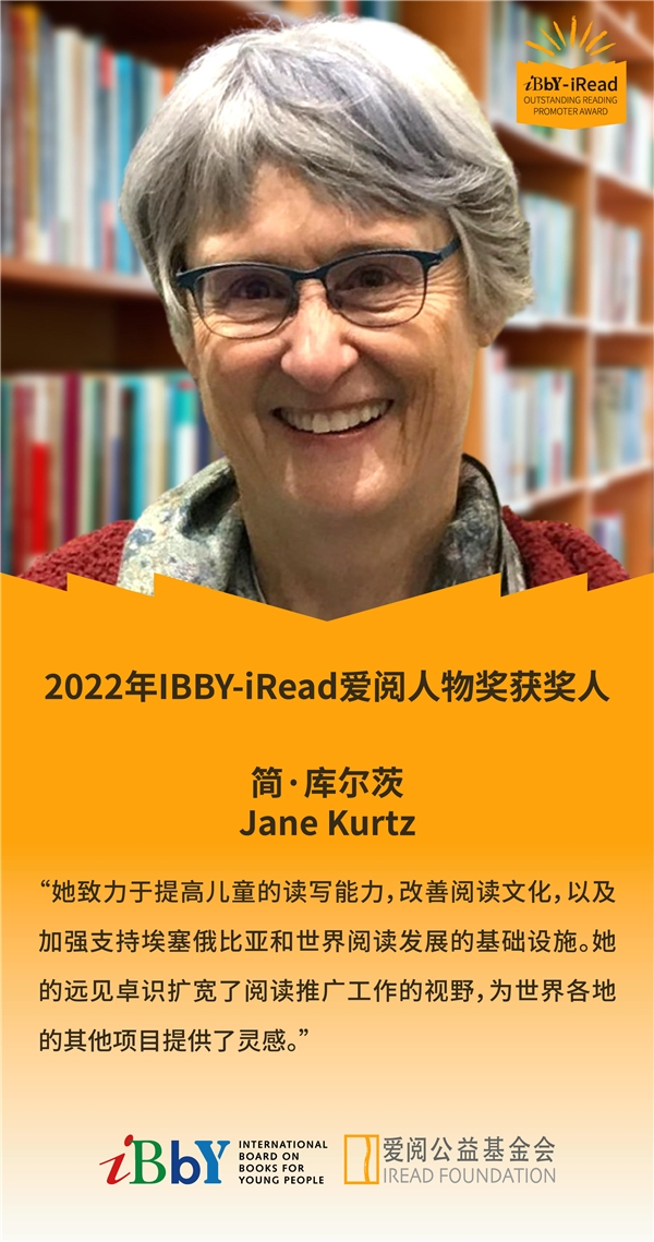爱阅公益基金会理事长李文表示:“热烈祝贺佐拉·甘妮和简·库尔茨荣获第二届IBBY-iRead爱阅人物奖,致敬获奖人在推动儿童阅读发展上做出的杰出贡献。正值俄乌开战之际,更深刻体会到增加国家间理解的重要性,增加国际间的理解需要从孩子开始,从孩子的阅读开始,让全世界的孩子从小就有机会接触到全世界的优秀童书。通过阅读,孩子们认知感受无论远近,人和人可以心灵相通,互相理解,懂得和欣赏世界的多元性,接受和尊重差异化。我们希望通过高品质的儿童阅读,每一位儿童未来都是和平的使者,美好祥和世界的建设者。”