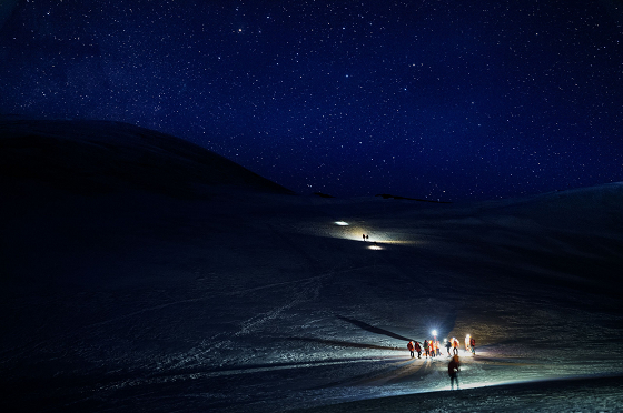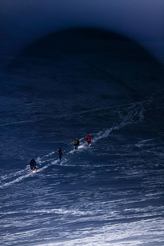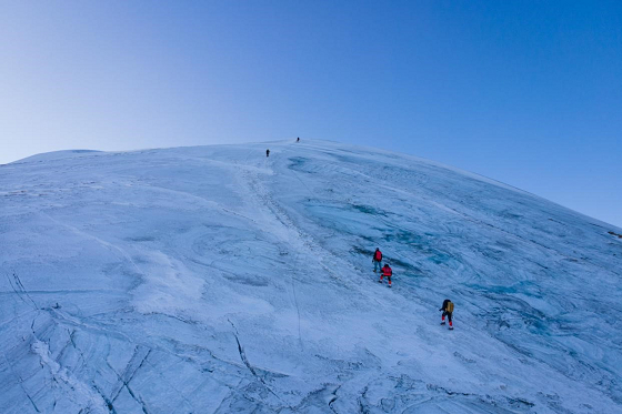 从洛堆峰峰顶望去,这光太微不足道。但在海拔5600米冰川的起始处,她们只能借着自己脚下这片光,慢慢前行。