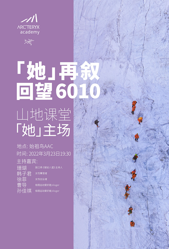 想了解更多冲顶细节吗?3月23日19:30在山地课堂,「她」再叙,回望6010,听冲顶洛堆峰的她们,亲述洛堆峰上的动容瞬间。