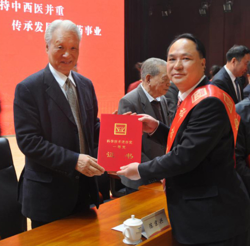 十一届全国政协副主席陈宗兴亲自为李浪辉颁发中国中医药研究促进会科技进步一等奖。
