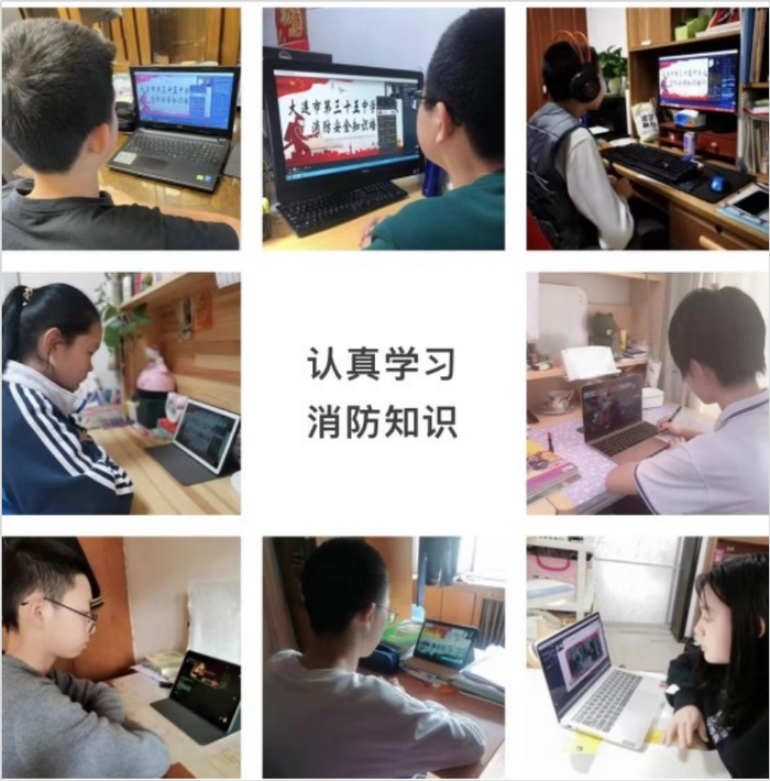 ▲家校联动共同观看安全健康教育网“消防云课堂”
