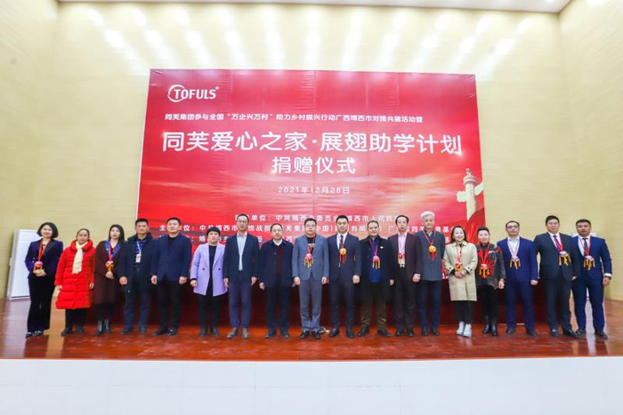 集团旗下广东省同芙慈善基金会在脱贫攻坚、乡村振兴、安老、扶幼、赈灾救援、助医助学等多领域开展社会公益慈善活动,为构建和谐社会做出了积极的贡献。同时还感召了一批企业家参与慈善助学,通过基金会对接企业家实现一对一帮扶的贫困学生,全国超过万人。其中关爱留守儿童爱心之家项目,覆盖广西百色10所学校,直接受益儿童超过了6000人。
