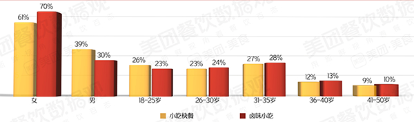 《2022卤味品类发展报告》中显示:卤味小吃消费者中61%是女性,年龄集中在18-35岁(占比75%)。